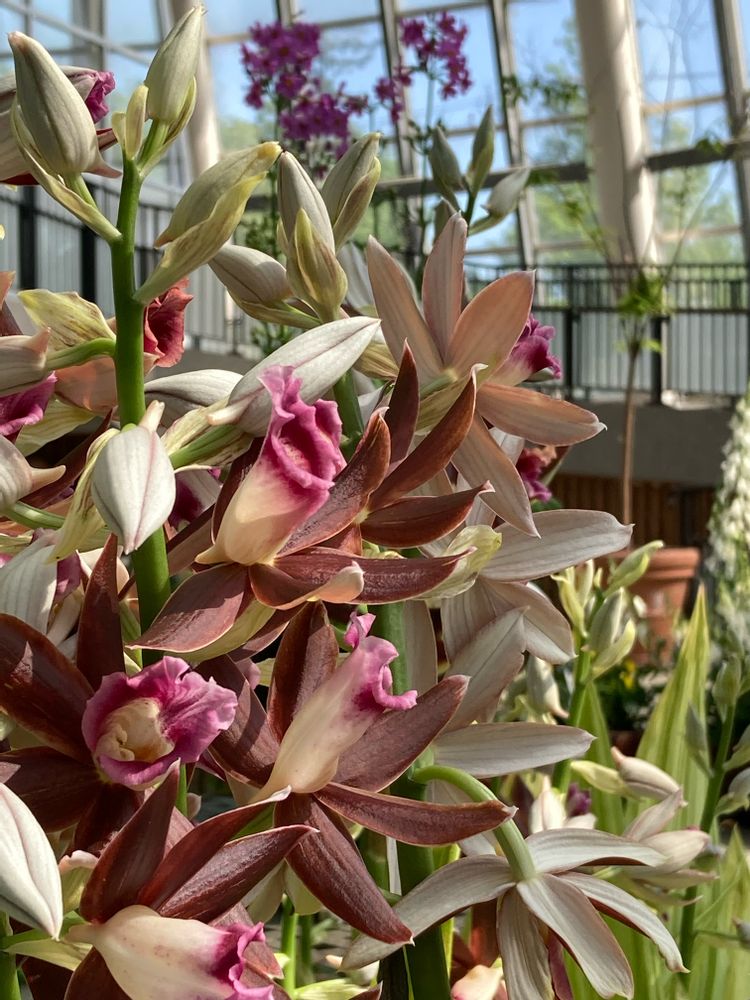 カクチョウランは漢字では「鶴頂蘭」と表し、咲いた花の姿を鶴に見立てたものです。属名のファイウスは「暗い」という意味の「ファイオス」にちなみ、カクチョウランの花の内側が暗褐色になるところに由来します😆