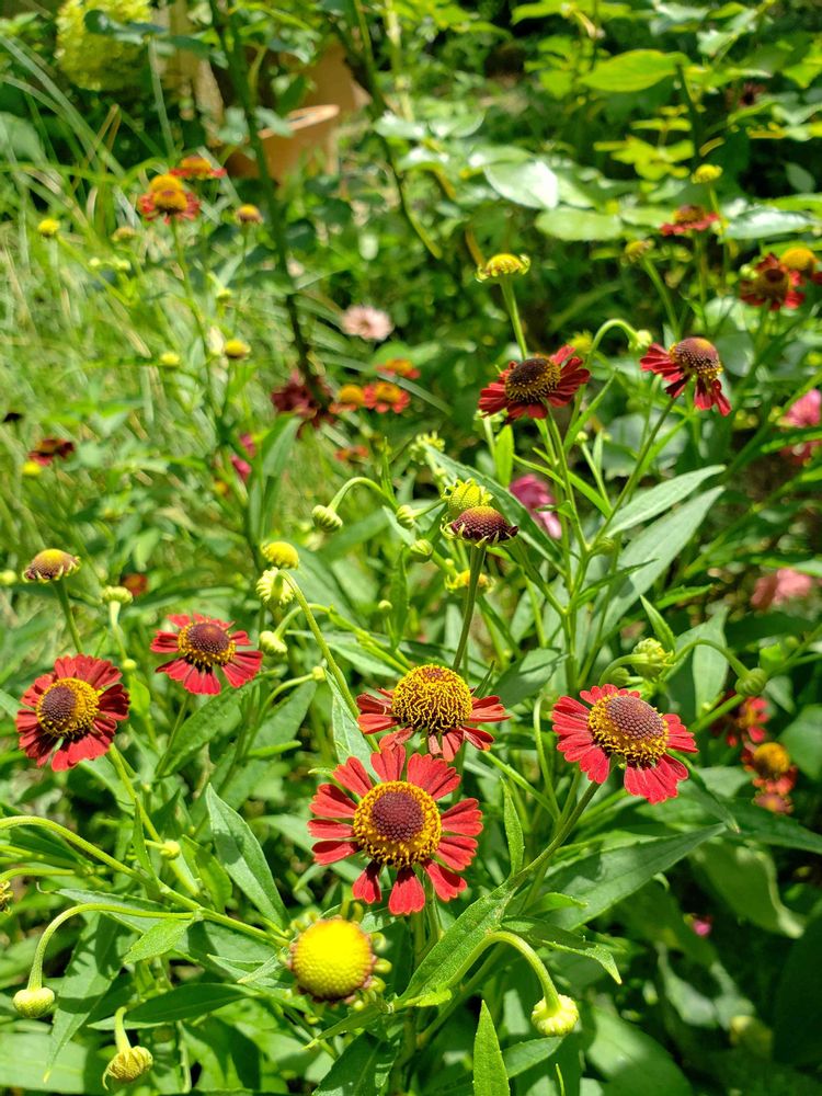 このへレニウムは直線的に伸びるので少し枝を増やしてみました。花数も増えていると思いたいです😁