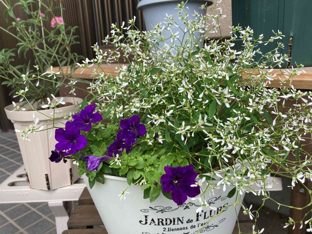 スーパーチュニア、ロイヤルベルベットは、花柄を取ろうとして何度も折れてしまい、なかなか成長してません😥