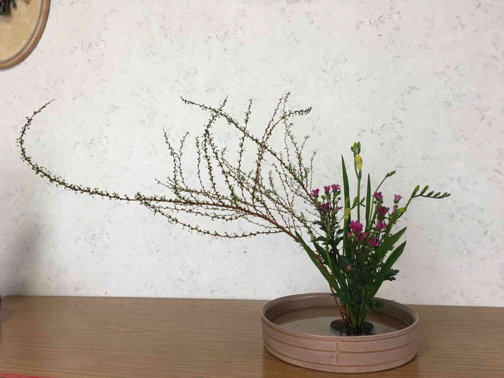 今回のお稽古🌼は、未生流の基本形、個性盛花、横斜型。