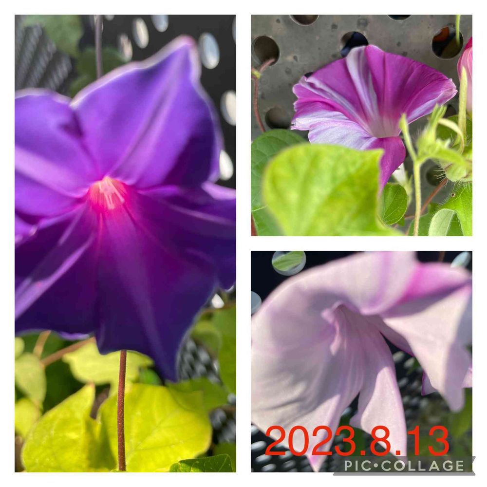 今年初めての桔梗あさがお🤗種とれてたんやー。今年は暑すぎて咲きが少ない。今日はめずらしく3個咲いてた😃やぶれてるのも載せちゃえー📹やっぱマダラが好きやなー😬来年はマダラ模様の種買って植えよー🌸