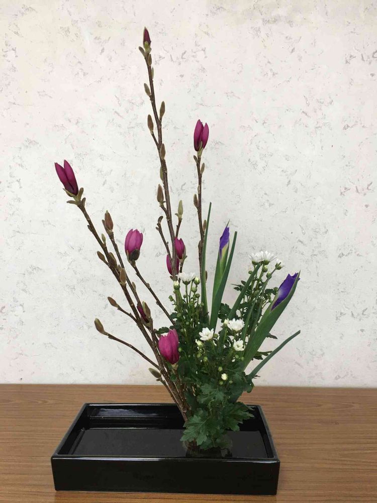 今回のお稽古🌼は、未生流の基本形、個性盛花、直立型。