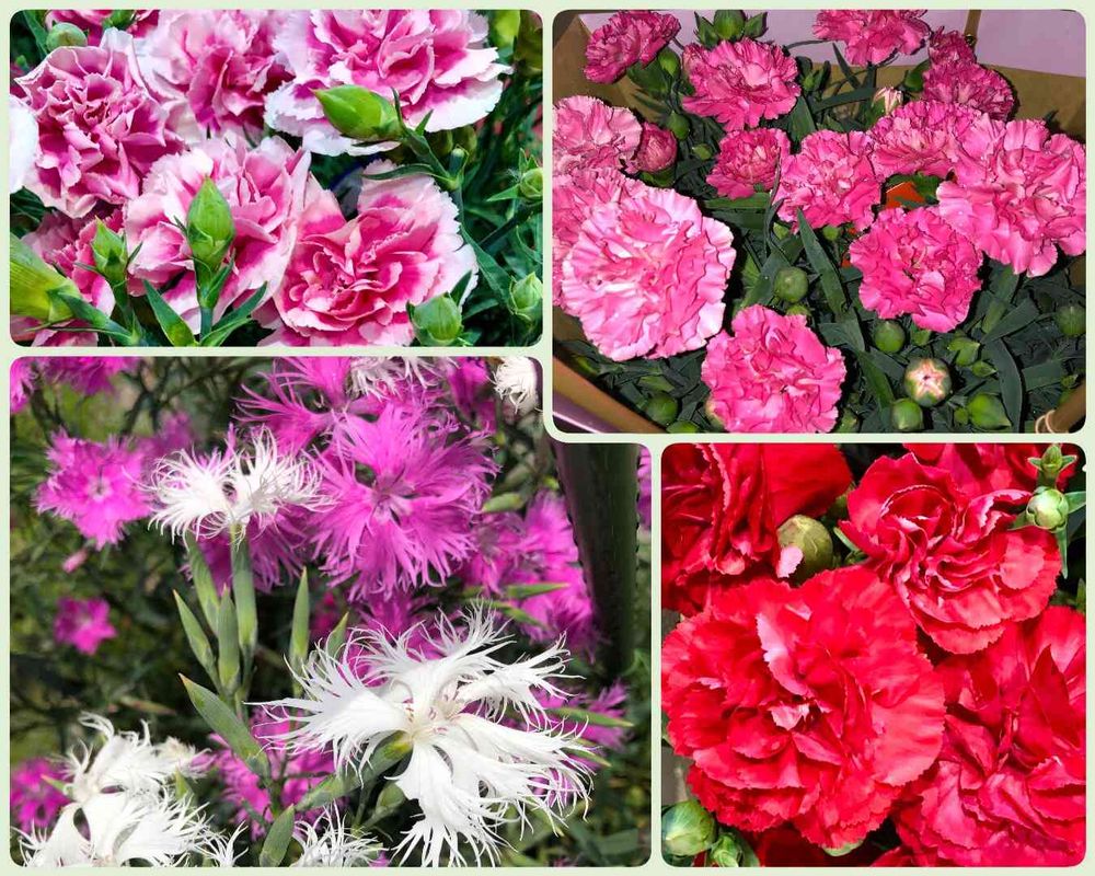 今年の春にプレゼントで頂いた🎁ナデシコさん(右上)と、お店で出会ったナデシコさんと我が家で咲いたカワラナデシコさん達です🥰👍
