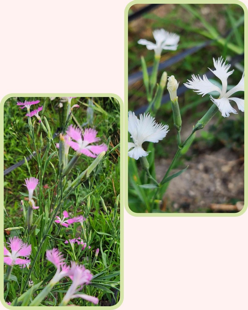 こぼれ種から、白色、ピンク色咲いています。💗💚