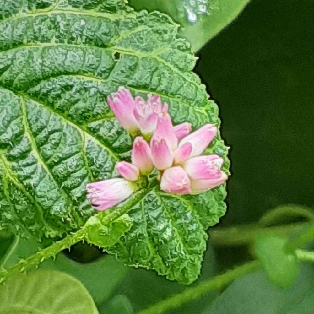 緑の葉っぱばかりの中に、小さなお花がポツポツ咲いていました🎶