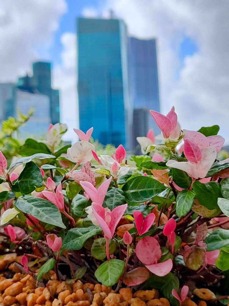 ビル🏙️をバックにハツユキカズラとはとっても素敵💕