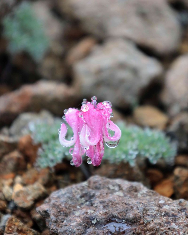 雨雫でしっとりしたコマクサは最高❗