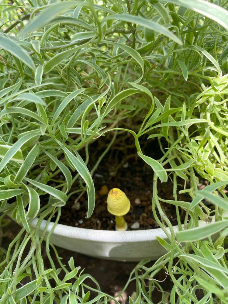 今夏は大量発生😅で、あちこちの鉢に黄色い🍄が‼️