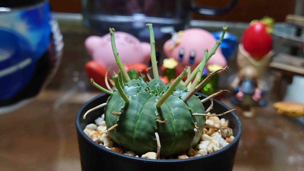 しましま模様があって丸くて可愛いです🤤トゲのように見えるのは、咲き終わった花茎です。それが残ってトゲのように見えます😊個性的🤭