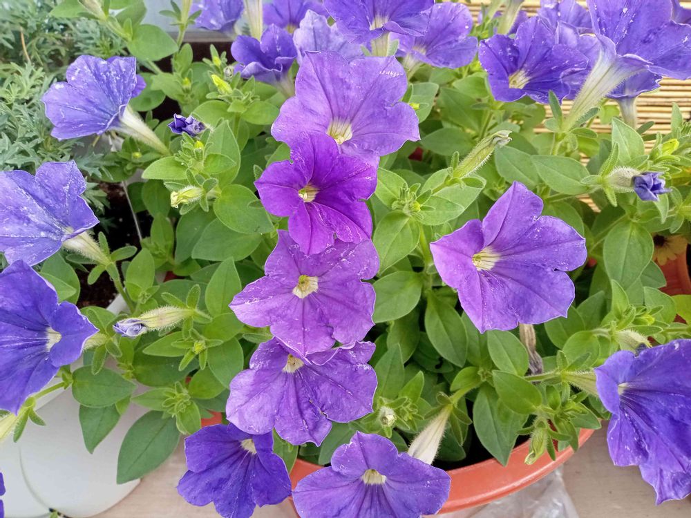 さわやかな色合いのペチュニア、蒸し暑いこんな日に涼を頂けますね〜💕