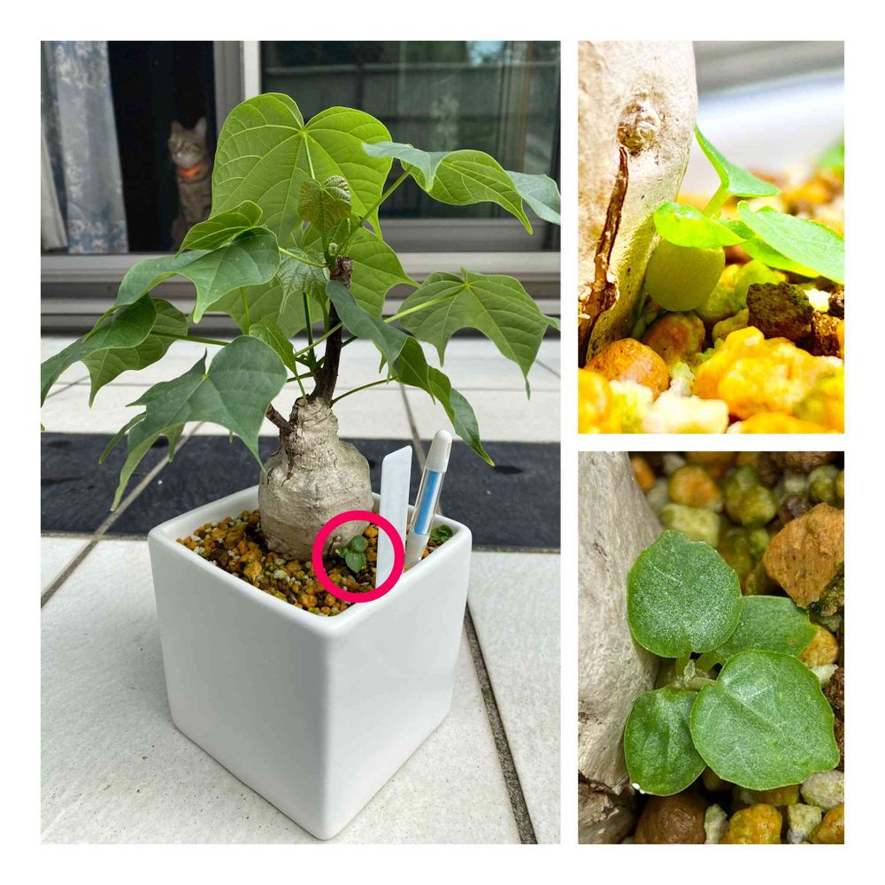 葉っぱはそんな感じだなと思ったけど、同じフォエチダの鉢のこぼれタネで芽出した子と塊根の感じが違ってて💦