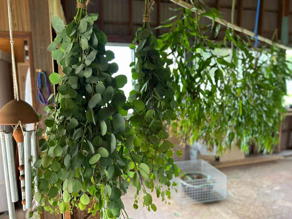 好きな物を植えたらこんな状態になってます。ユーカリは成長早過ぎて剪定を年に何回するかわかりません🤣