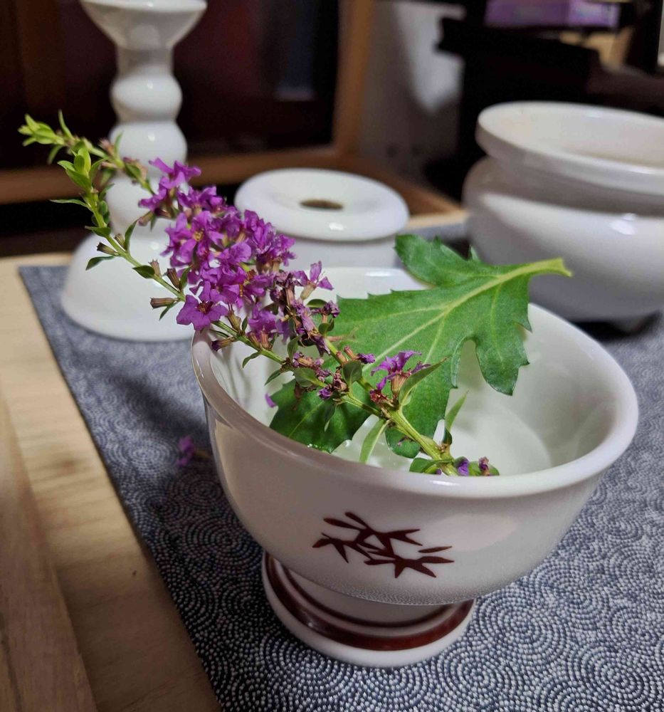 ミソハギは、畑のすみに植えてありましたが、草刈り機で二回程刈られて、必要な時には花は無し😅うちは、南天の葉でお清め?でしたが、何故か今年は香ノ木の葉でした🤣義母が間違えたのか💦