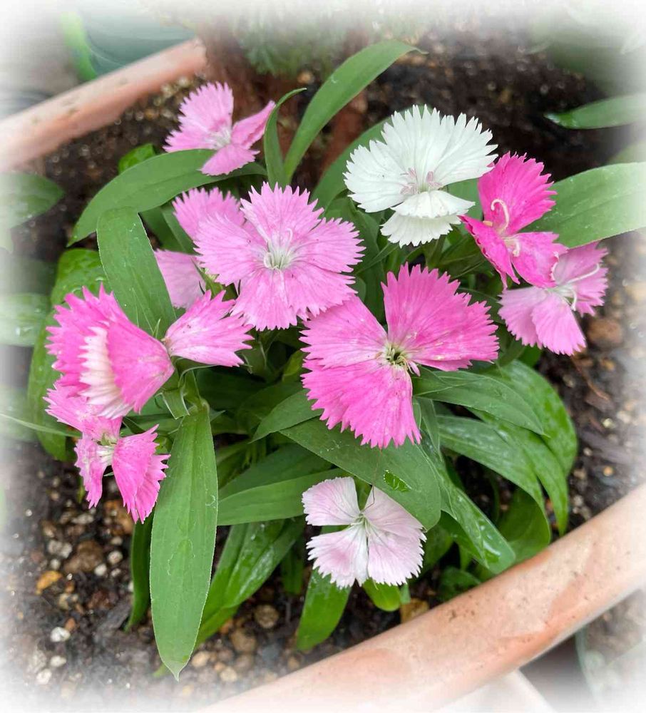 花色が白~桜色~桃色に移り変わるカラフルで楽しいナデシコですヽ(´▽`)