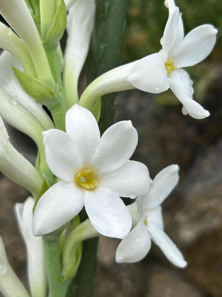 地植えにしているチュベローズ、台風なのに、1本だけ咲いていました。