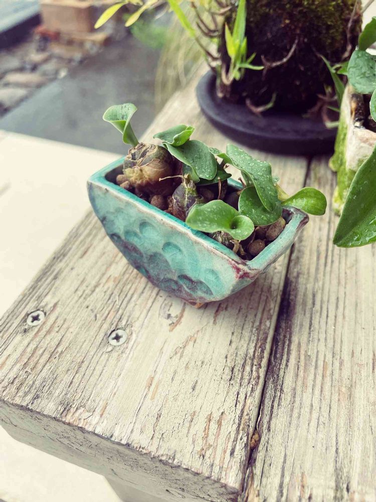 最近、山野草を始めました。旦那は盆栽、私は下草を学び始めました。 自宅で陶芸しています、豆鉢など作っています。の