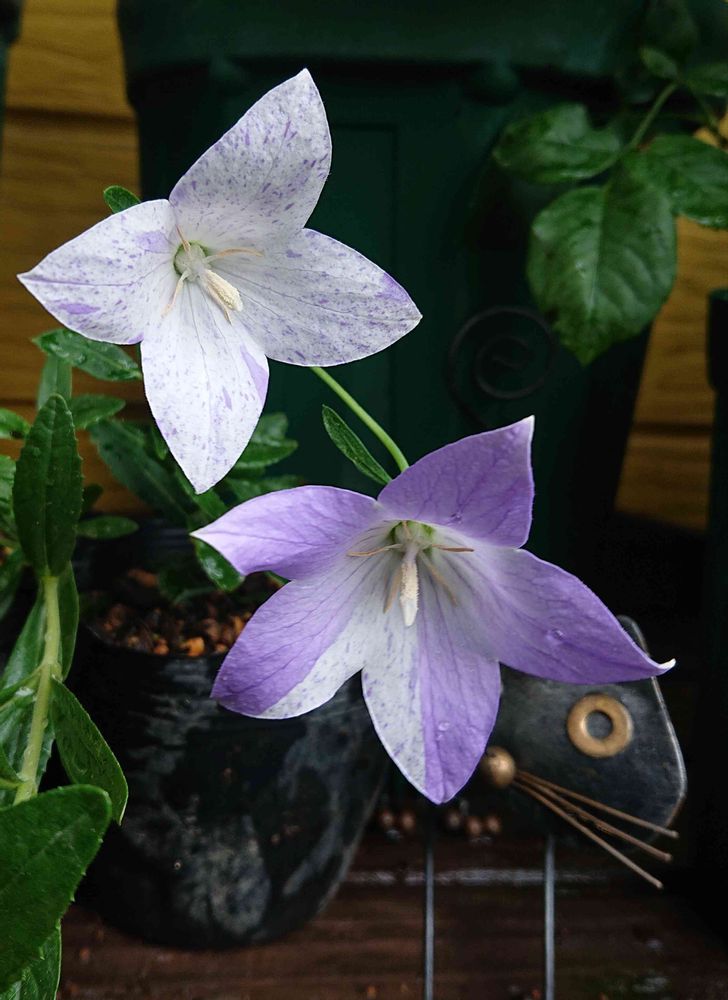 早速水やりしていたら、先日ホーリーさんにいただいた桔梗咲いてました~🎵 いい色~💓