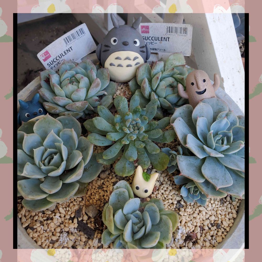 元気なDAISO多肉さんでかくれんぼ中のトトロさん達~゚+.(*ノωヾ*)♪+゚