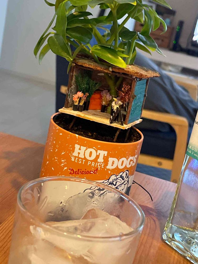百均やら、 ホームセンターで売ってる 一番小さい観葉植物に、 ちっさい家、作ったりしてます。 ちっさい家用の家具も作ります。 窓にお弁当のふたとかのプラ貼って ガラスっぼく…電気もつきます💡