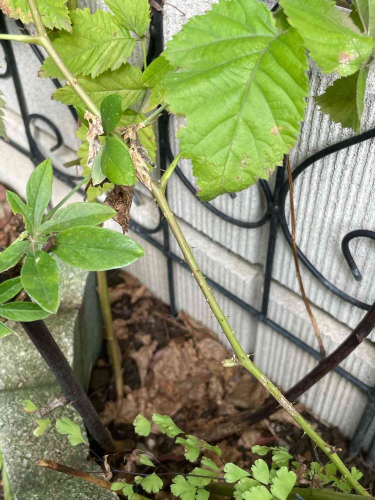 我が家のブラックベリー、新しく生えてくる枝はとにかくトゲトゲしいので、不用意に握ると手に穴が空きます🩸