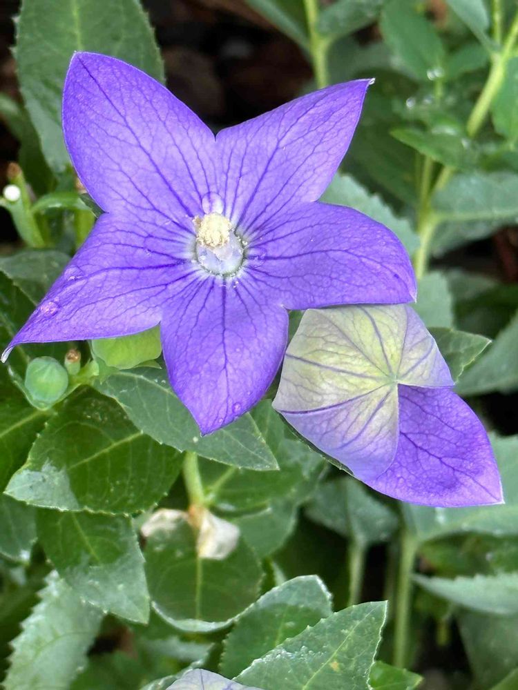 Platycodon grandiflorus/Platycodon. Campanulaceae. Asterales. Magnoliopsida. Tracheophyta Native to/China. Korea. Japan. The Russian Far East Commonly called/Balloon flower. Symbolism/Endless love. Honesty. Obedience *Flower mean in Japanese/Eternal love. It also means ‘sincerity’ and ‘elegance’. Photo 8/16 9:14am 2023