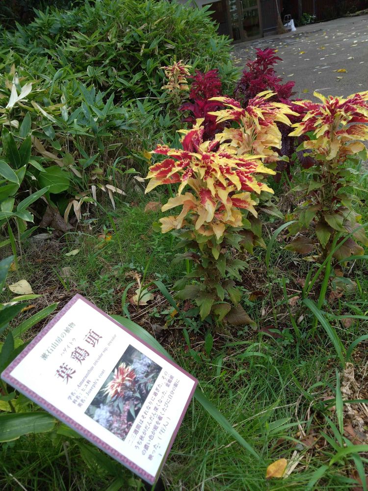 漱石山房(夏目漱石の最晩年の家)の植物。説明板はつぎの通り。