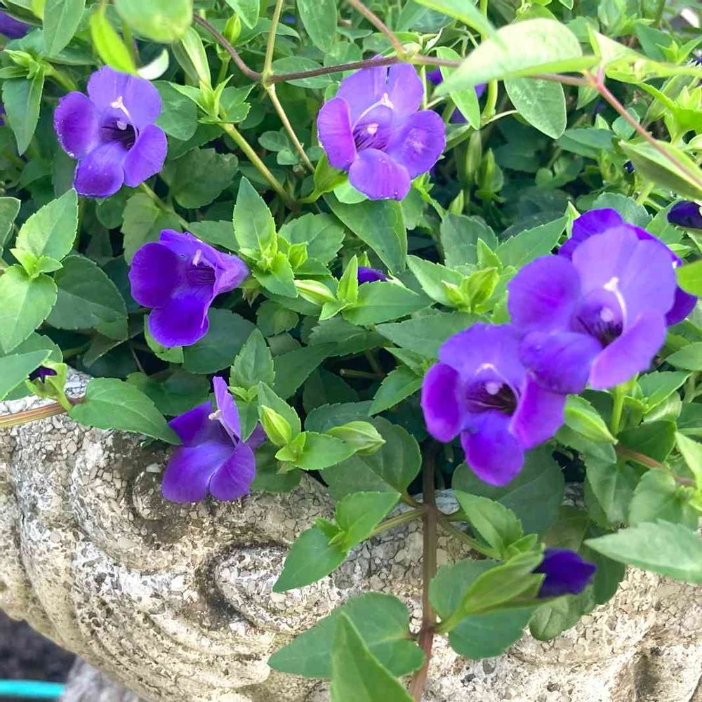 夏の暑さに強く鉢から溢れ、お隣のクレマチスも元気なトレニアに絡まろうと必死です😁