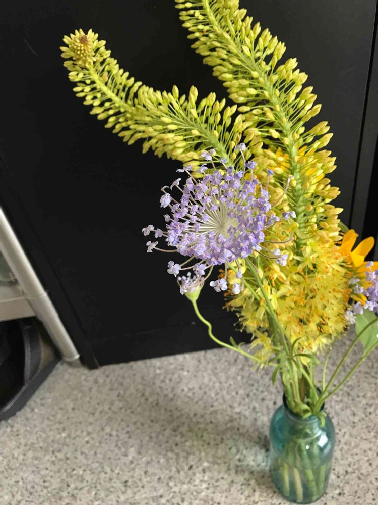 紫色がちょっとあってとてもいい花となりました。フォックステリアリリーも初めてで蕾だったのが次々と黄色の可愛い花を咲かせて楽しませてくれています。
