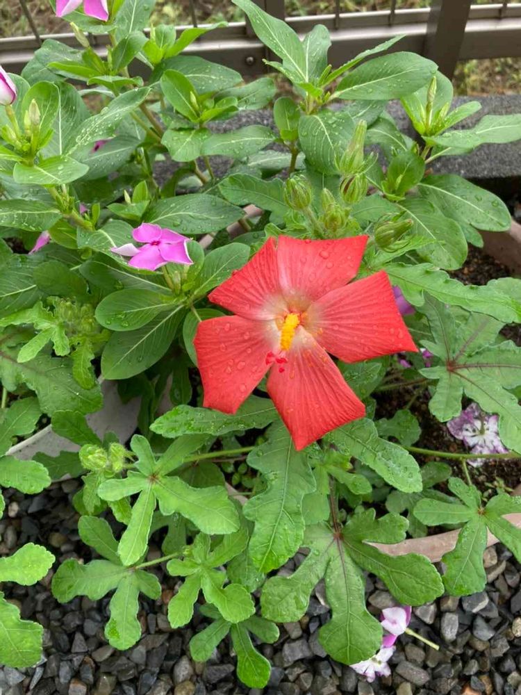 お出かけ先,ニチニチソウ,アベルモスクス(アカバナワタ)の投稿画像