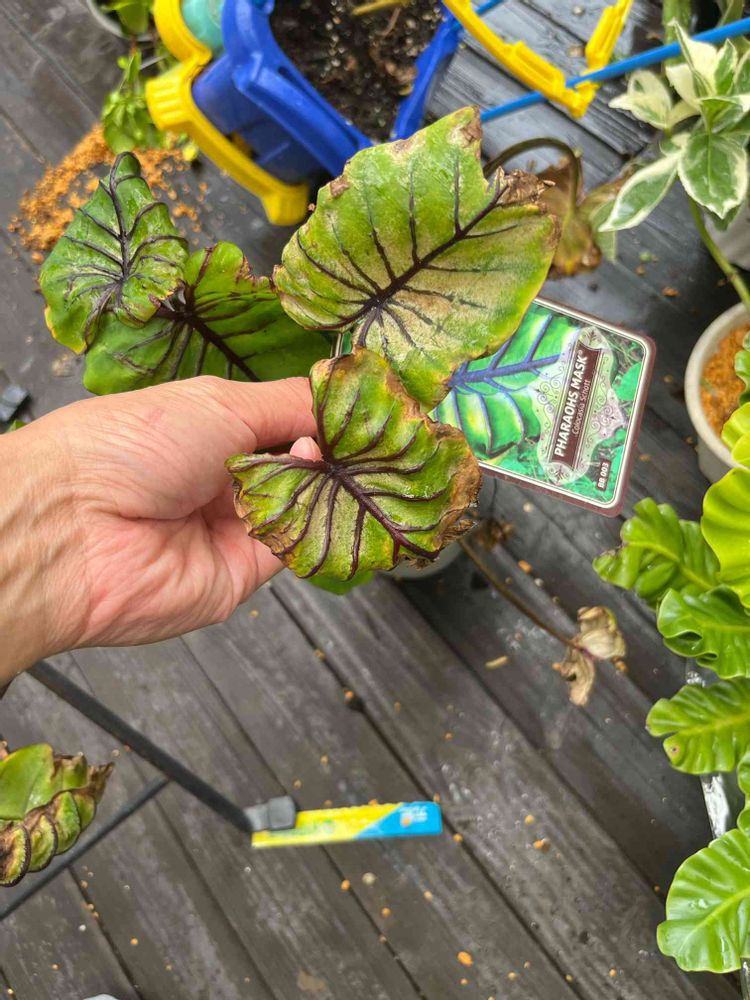 クワズイモでも斑入りは直射ダメなんですね💡危ない危ない💦