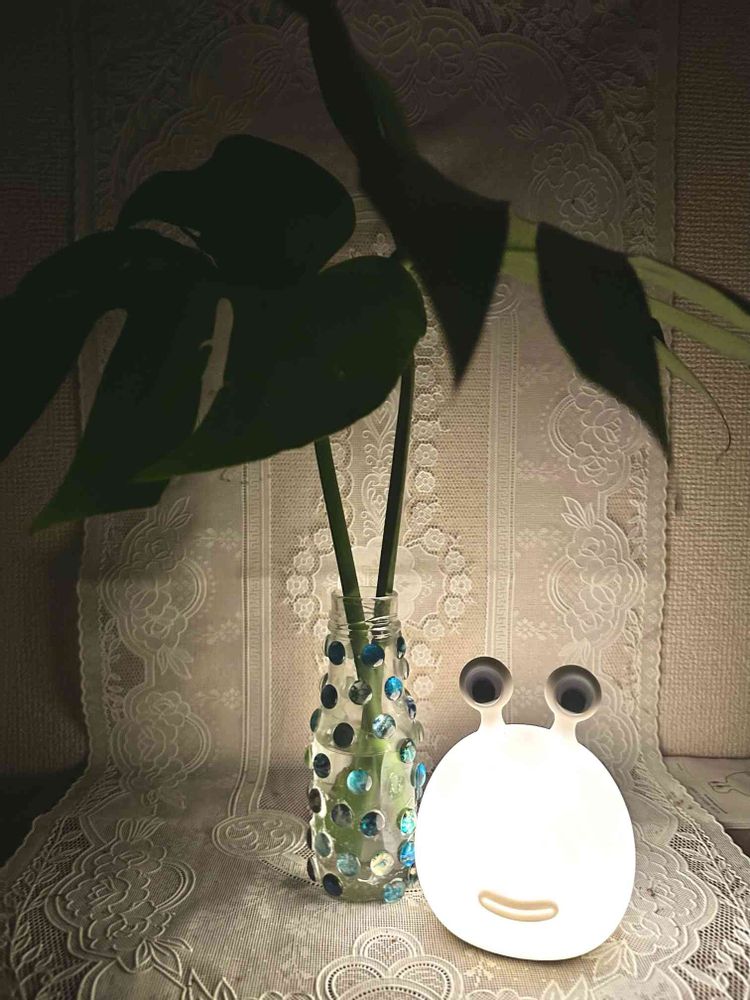 このライト、目をカチッと合わせると付けたり消したりできて、目玉をくっ付けていると、明るくしたり暗めにしたりできます。
