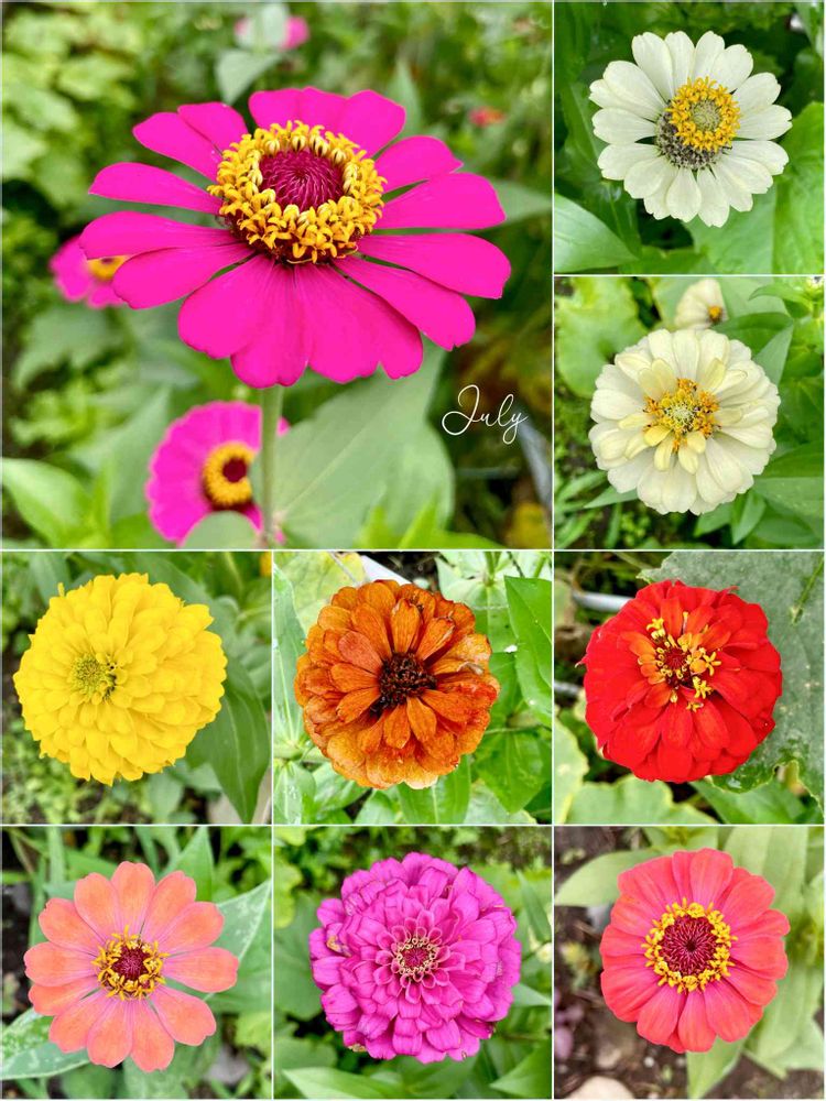 わー、今日のお花ヒャクニチソウ/ジニアさん、カラフルでとっても素敵なコラージュですね~💗💛❤🙆