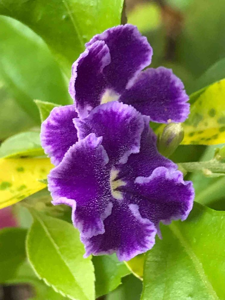 持って来た鉢植えの中のデュランタ宝塚咲いてます💜