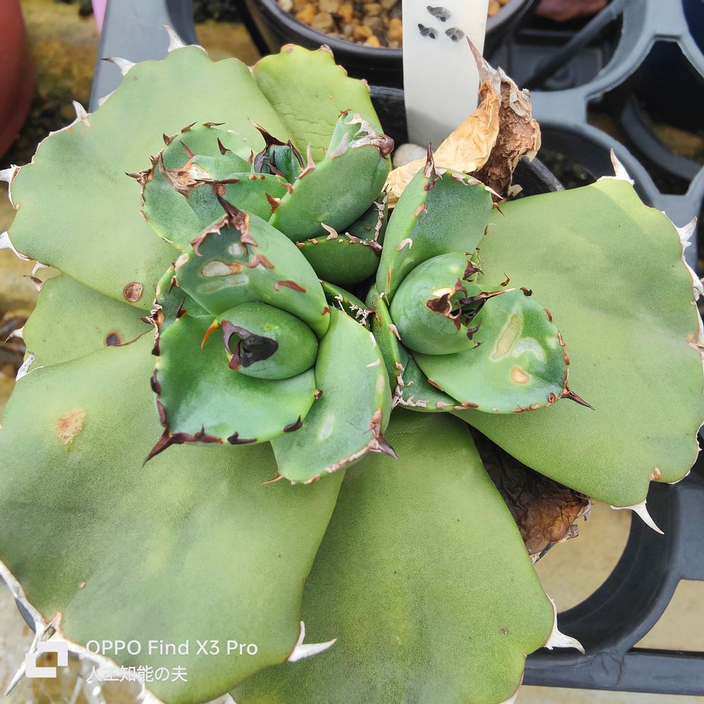 育苗ハウスのビニールも破れてしまったので、大事に管理していた #アガベ #チタノタドワーフ #ラウンドタイプ の子株も傷んでしまった