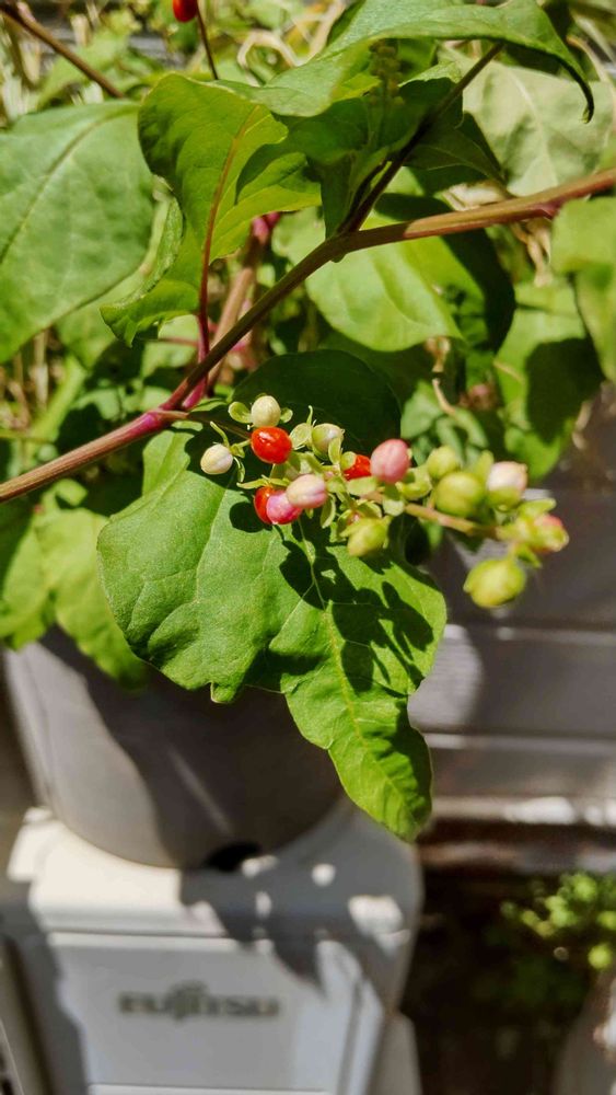 数珠珊瑚❤️白い、花が、赤い、実、になりました😄偶然ですが、昨日、姉に、珊瑚の、ネックレス❤️頂きました、😄