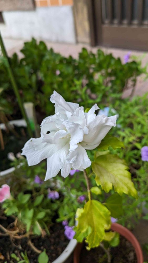 昨年挿し木した八重咲きの木槿が咲きました🤗