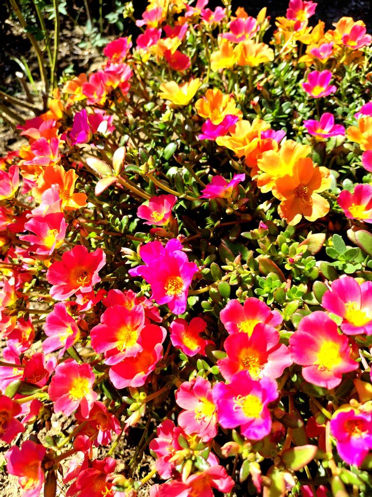 ポーチュラカが日差しを浴びて 元気に咲いていました😀