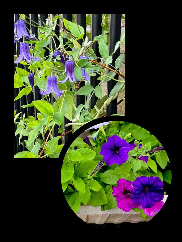 クレマチス ロウグチと溢れ種から4年目のペチュニアです。今年は、ちゃんと種採ります😅