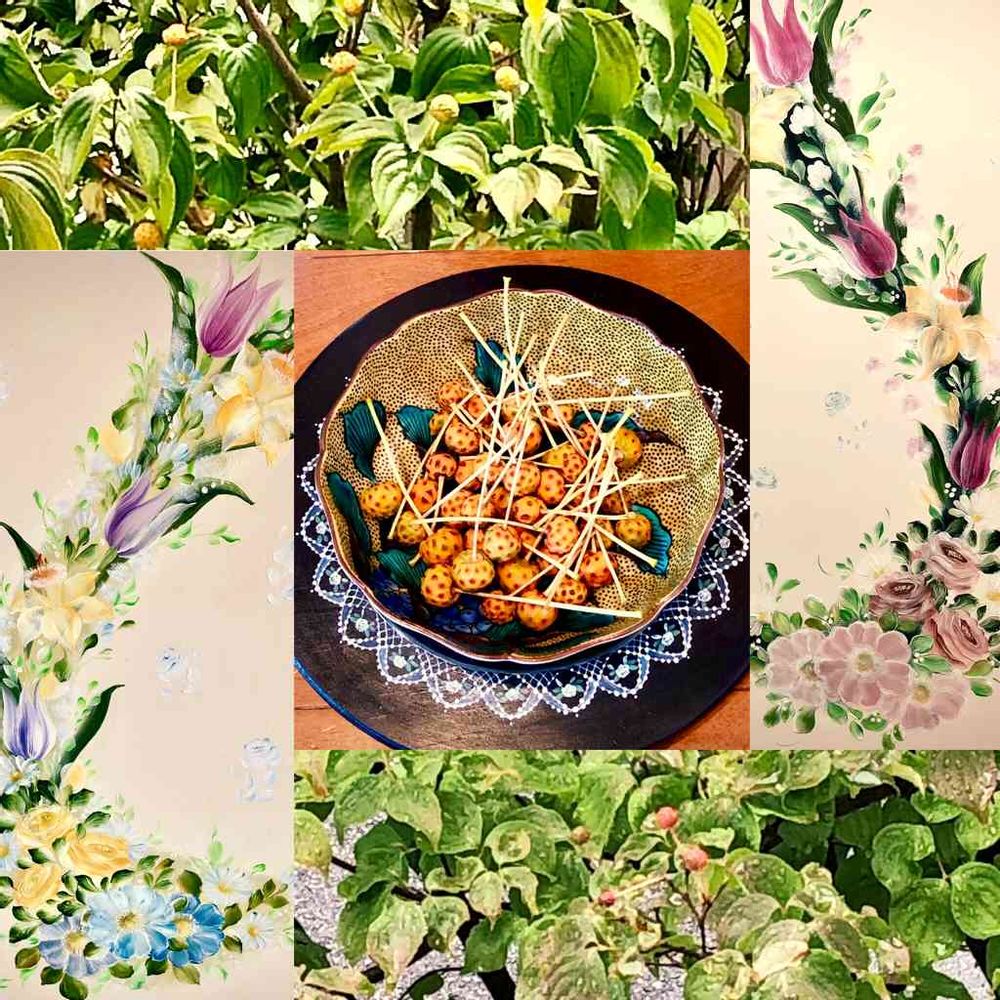 💕ヤマボウシの実と素敵なお花のトールペイントで