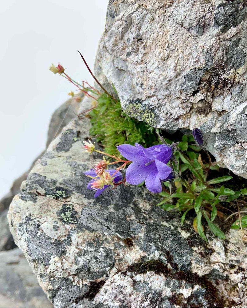岩の間から顔を覗かせたまさにイワギキョウですね。雨に濡れて綺麗です💜