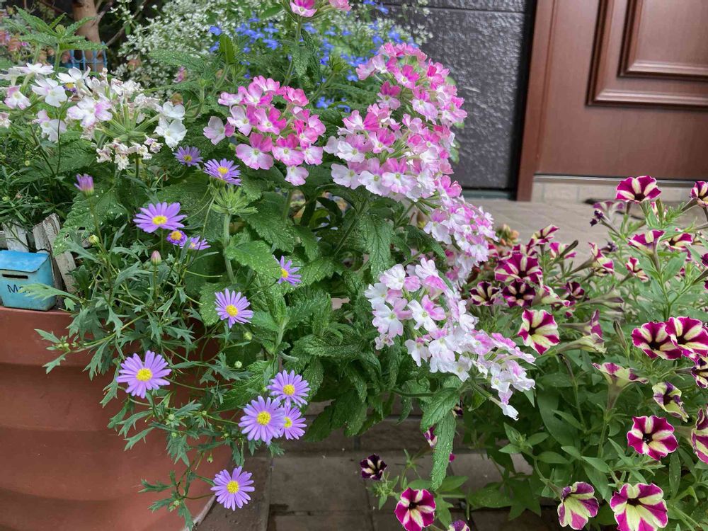 yokoさんの玄関,寄せ植え,紫の花の投稿画像