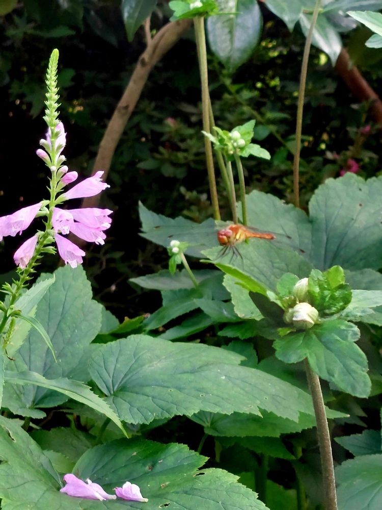 カクトラノオに秋明菊🥰そこにトンボが遊びに来て✨️