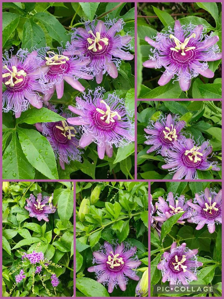 私の知ってる時計草は白い花で実がなり、夏はいつも美味しくいただいてるので、ムラサキのお花には実がなるんだろうかと⁉️~😅