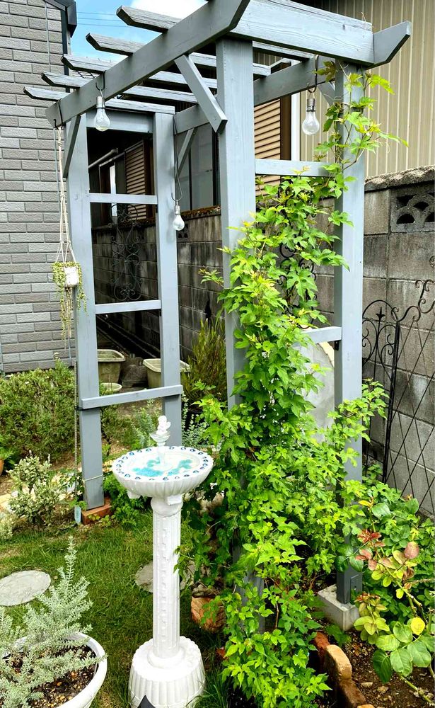 パーゴラに這う野葡萄の瑠璃姫さん🍇