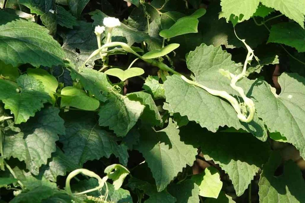 近くの植物園でも烏瓜、黄烏瓜は見事に育っていましたが、蛇瓜は存在していなかったので。