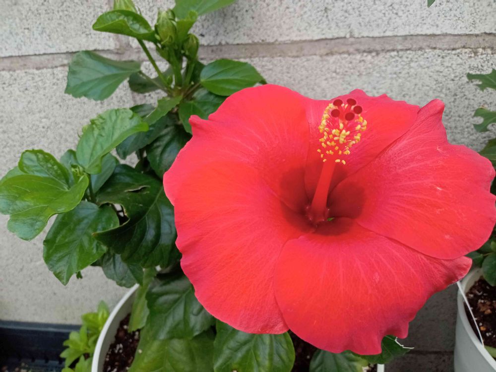 真っ赤なハイビスカス🌺、咲きましたね〜👏👏 見切り品からここまでとはさすがあゆきちさん👍