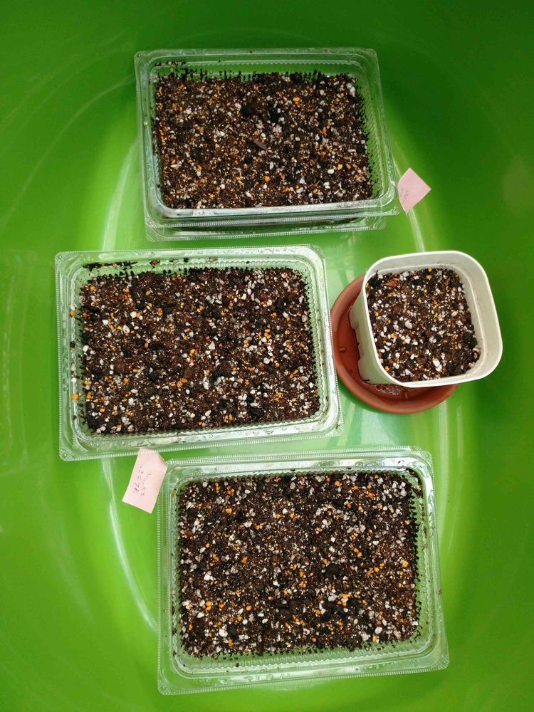 お盆休み最終日の15日に獲ってあったビオラの種まきをしました。