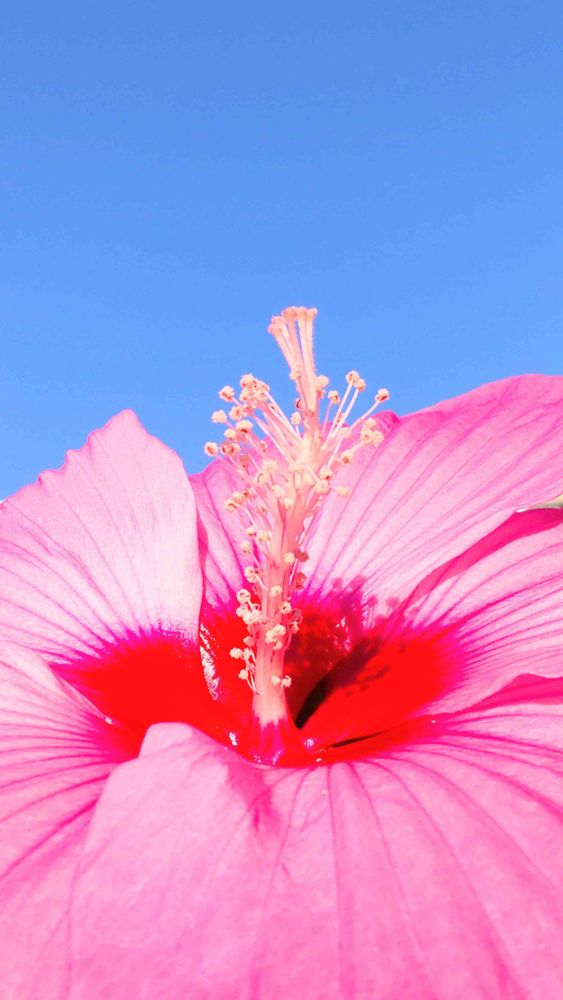 快晴の空と、ピンクのタイタンビカス