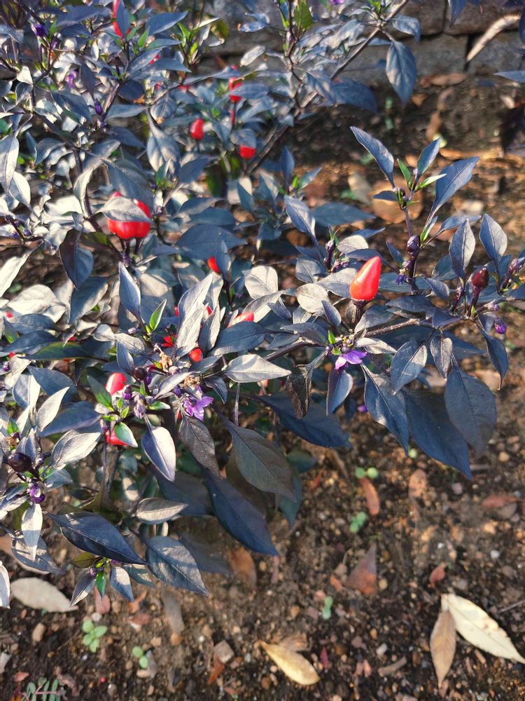 この観賞用唐辛子🌶️は、ミッドナイトファイヤーというかっこいい名前がついています。ちょっと大袈裟ですよね🤭(農業試験場内にて)