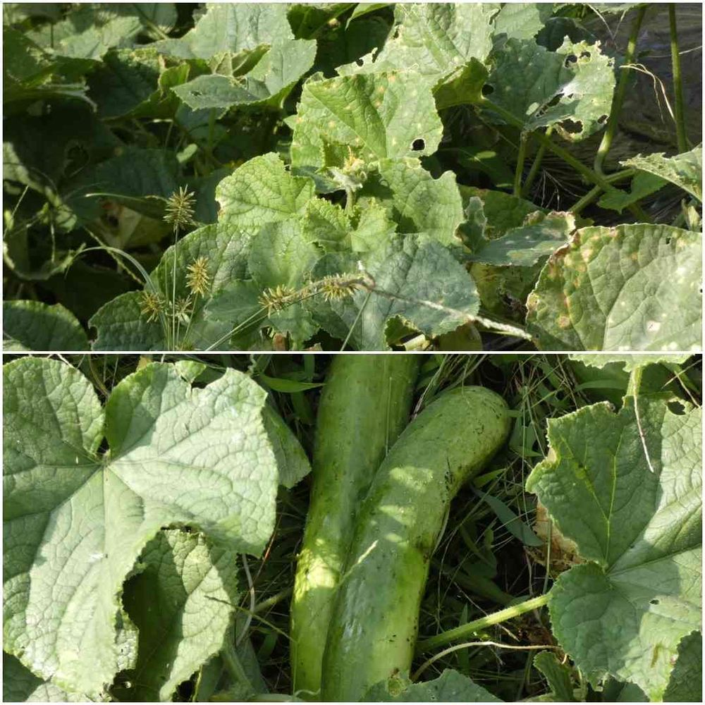 葉っぱをかき分けた所、太いキュウリ🥒を2本見つけました。